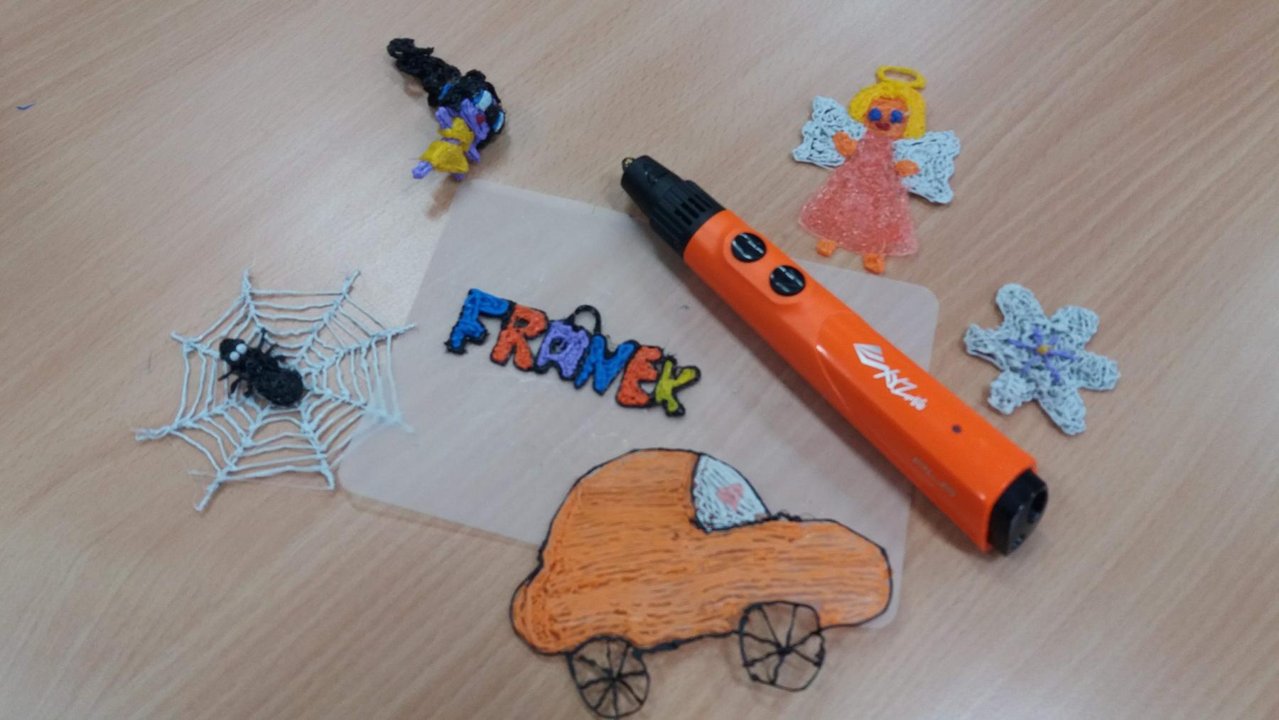 – penów 3D, dzięki którym narysowane pomysły mogą ” opuścić” kartkę i zostać zabrane przez dziecko,