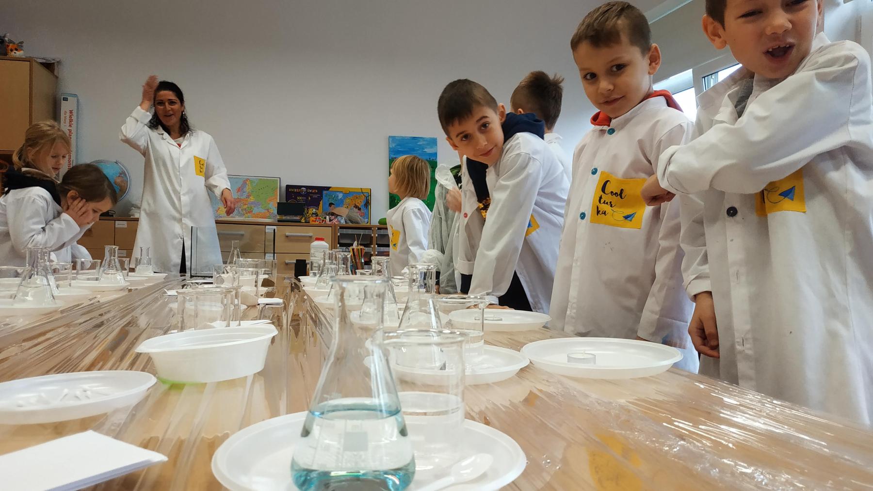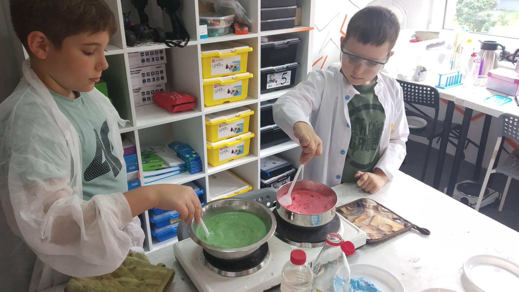 – Laboratorium Młodych Chemików – warsztaty fizyczno – chemiczne, w których uczestnicy mają okazję samodzielnie wykonać szereg ciekawych doświadczeń i eksperymentów. Niektóre z nich, ze względu na sposób skomplikowania i poziom bezpieczeństwa są jednak wykonywane tylko przez instruktora. Żaden z eksperymentów nie pozostaje bez komentarza…. dzieci dowiadują się skąd i dlaczego tak, a nie inaczej :-)
