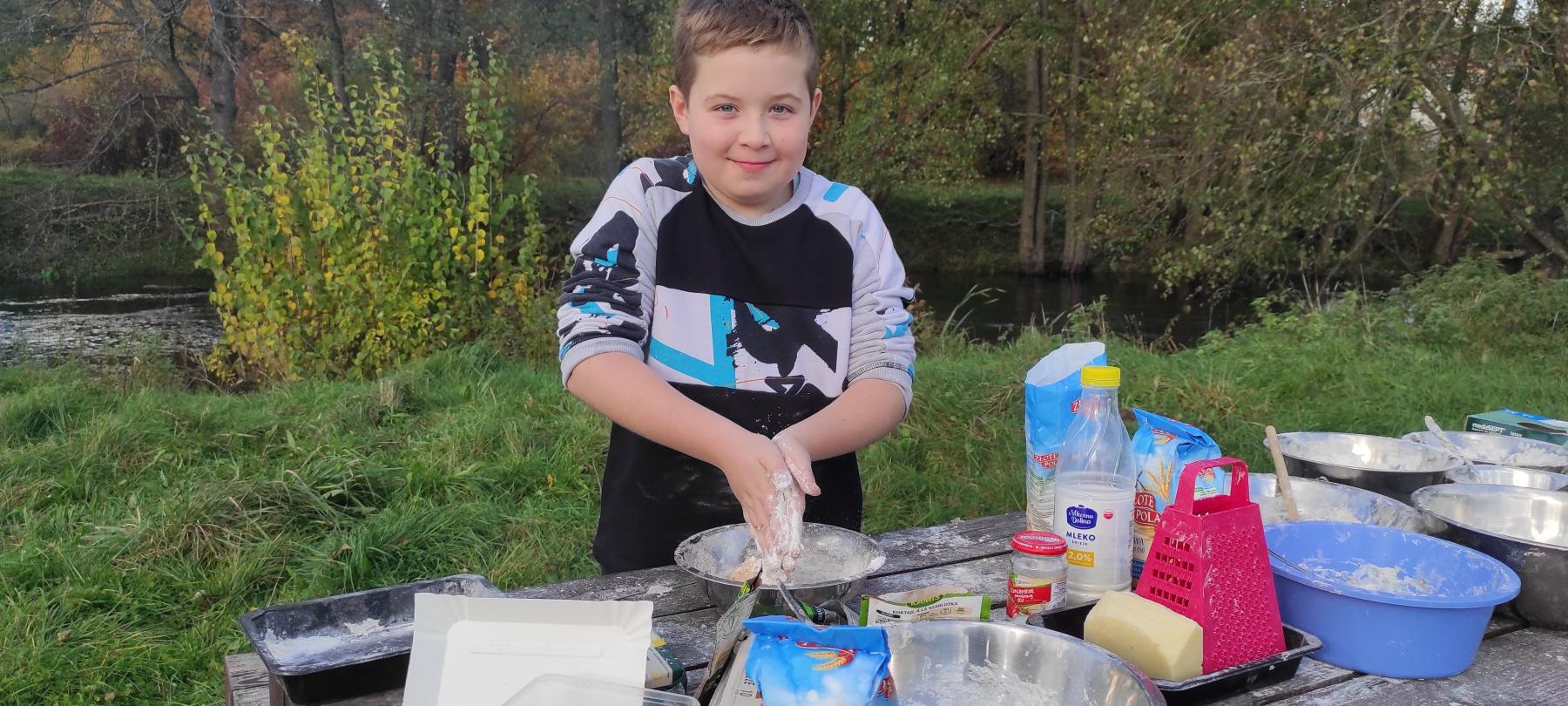 Uczestnicy samodzielnie przygotowują potrawy mięsne, a także wypiekają chlebki indiańskie i podpłomyki z samodzielnie przygotowanego i wyrastającego przy ogniu ciasta. Dowiadują się jak przygotować kociołek mięsny i jak ugotować breję…pyszną i pożywną zupę NIC…( a może uda nam się przygotować kawę żołędziówkę?)…